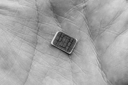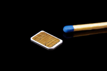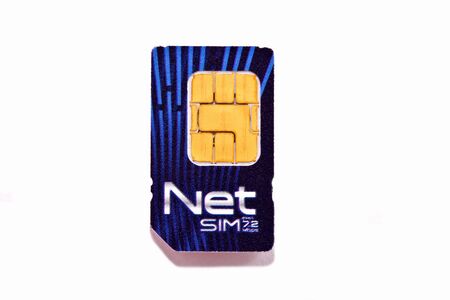 Mobile microchip simcards close up view isolated on studio background. Telecommunication theme
