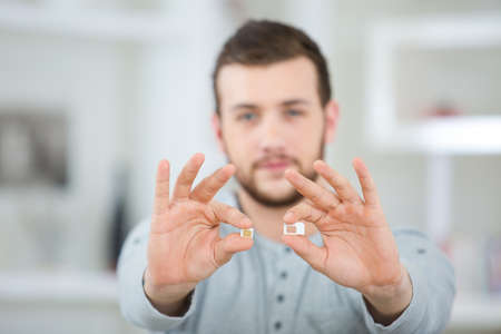 Close-up Of A Man Holding Nano Sim Card Between Fingers