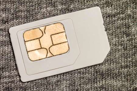 Simcard isolated on grey cloth texture background