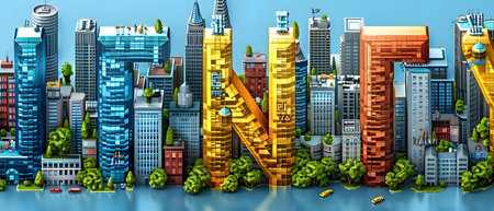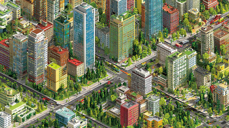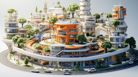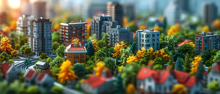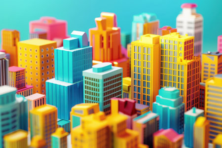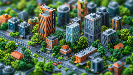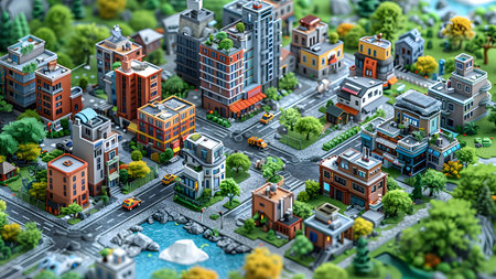 Vibrant Miniature Cityscape with Isometric Design
