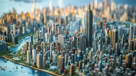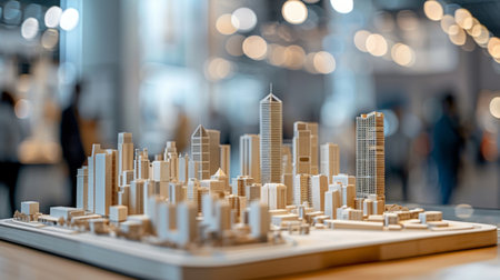 Urban Landscape Featuring a Miniature City Model With Intricate Buildings and Soft Lighting in a Dynamic Setup Generative AI