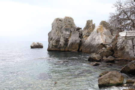 Rocky Black sea coast in Yalta district, Crimea.