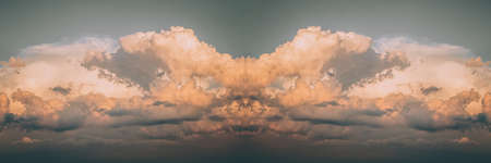 Beautiful dramatic clouds with orange gold sky background. Nature weather, panoramic cloud and sky background