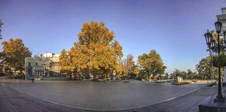Odessa, Ukraine - 09.11.2018. Golden autumn morning on Primorsky Boulevard in Odessa, Ukraine. HDR panoramic view