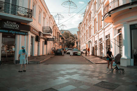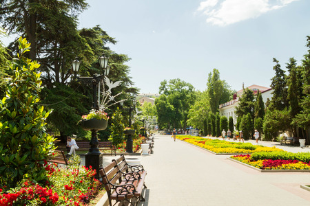 Yalta, Crimea - June 13: Lenin Embankment the central walking street of Yalta on June 13, 2018 in Yalta, Crimea.