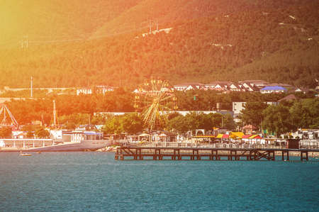 Kabardinka, Black Sea coast, Russia. Coastline of the resort on summer day.