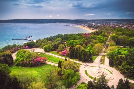 Chernomorsk, Ukraine 14.05.2023. Seaside or Primorsky park in Chernomorsk, Odessa region of Ukraine, on a sunny spring day