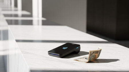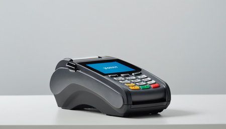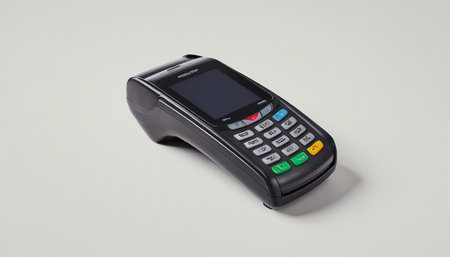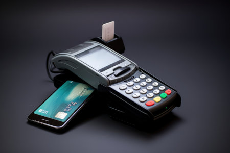 This image showcases a sleek, contemporary mobile payment terminal integrated with a smartphone. It highlights the ease and efficiency of modern digital transactions for businesses and consumers.