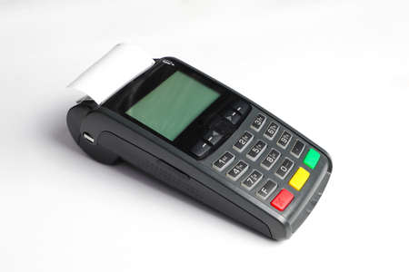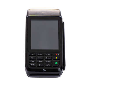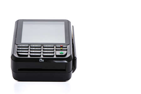 payment terminal for accepting money from plastic cards on a white background