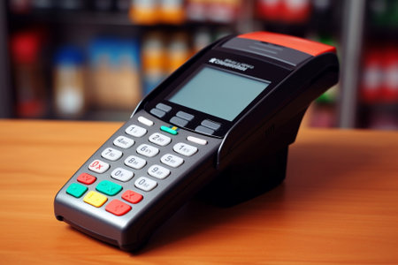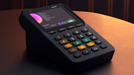 Pos terminal device for reading banking cards. Ai generative