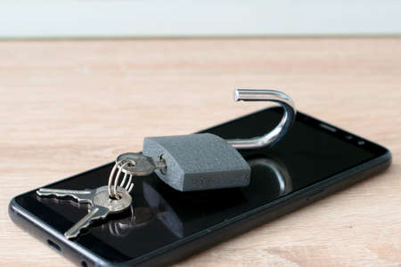 open padlock with keys based on the concept of smartphone data protection. High quality photo