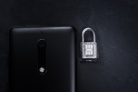 lock and sim card on it next to the smartphone
