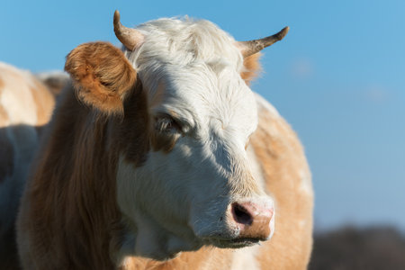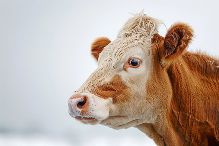 Tranquil white-brown cow isolated on a pristine white backdrop, epitomizing the peaceful allure of countryside living