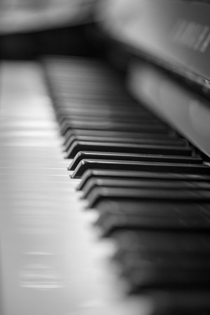 Close up of piano keys with blurred background