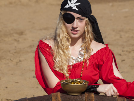 Woman the pirate looking at jewelry