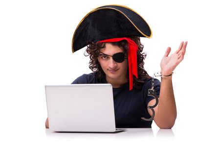 Digital security concept with pirate isolated on white
