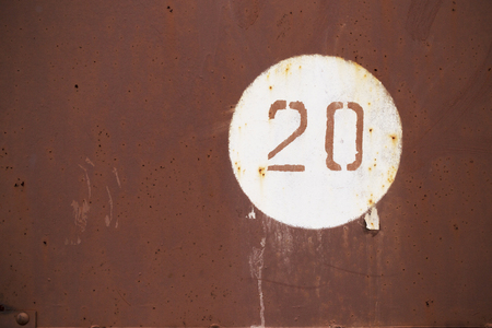 Plate with number twenty, detail of a data plate with a figure of numbers