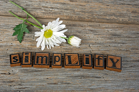 Simplicity word abstract in vintage letterpress wood type blocks against grunge wooden background with a copy space