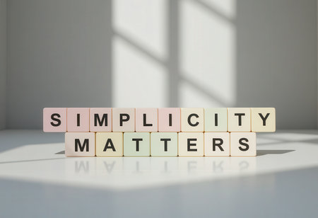 A creative display of colorful building blocks spelling Simplicity Matters, emphasizing the importance of minimalism and clarity in design and life.