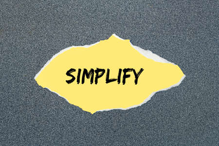 Simplify - written on torn yellow paper. Gray background
