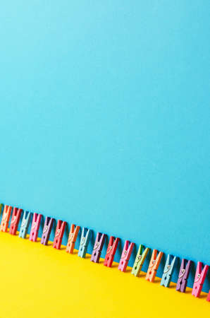 Laundry clips leaning over blue and yellow background