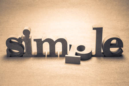 The word SIMPLE made from wooden cubes. Conceptual photo. Selective focus. Shallow depth of field on the cubes