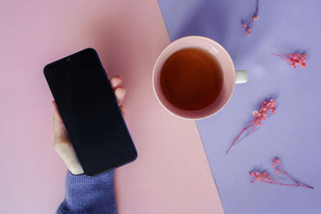 simplify reminder, pragmatic, declutter or get organized concept, - handwriting in a sketchbook with a cup of tea, soft focus image shot with a lensless pinhole camera