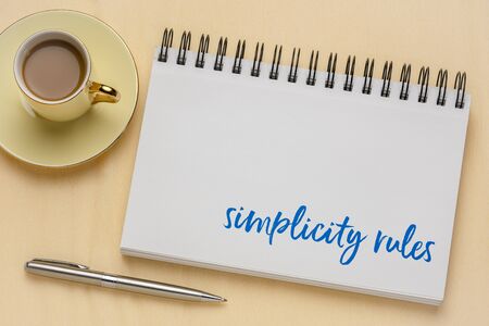 Notepad with sign simplicity on a wooden background.