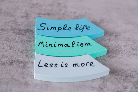 simplicity instead of clutter, an inspirational concept written on a notepad - simplification and minimalism. Calculator and magnifier on a light background.