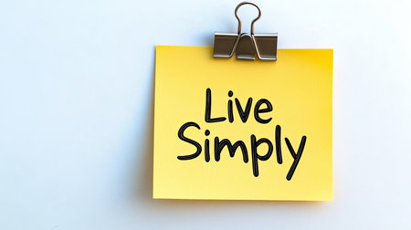 Yellow Sticky Note With Live Simply Text On White Background, Minimalist Lifestyle Concept.