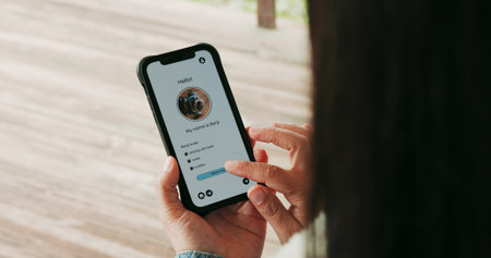 Woman using Apple iPhone XS with Instagram application on the screen. Instagram is a photo-sharing social networking service.