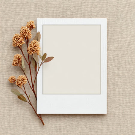 This image features a minimalist photo frame with dried flowers arranged elegantly on a soft neutral background, perfect for highlighting creativity and modern aesthetics.