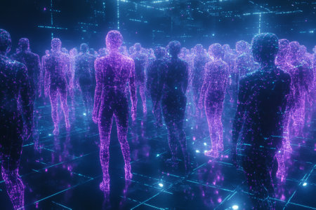 Crowd of digital people walking in metaverse, artificial intelligence concept