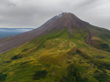 Aerial view of mount Sinabung volcano, on the island of Sumatra, Indonesia.