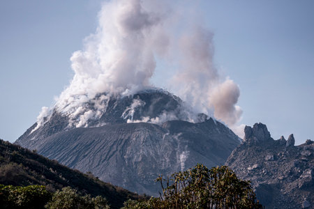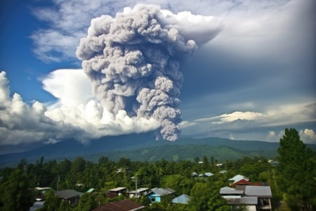 thick ash clouds from erupting volcano, created with generative ai