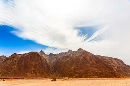 landscape of desert and high rocky mountains against the blue sky and clouds in Egypt in Sharm El Sheikh