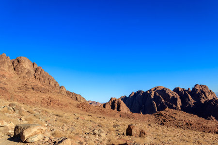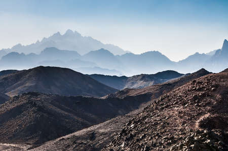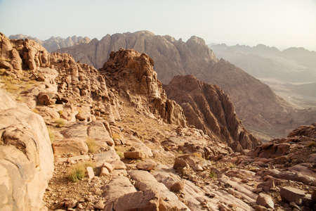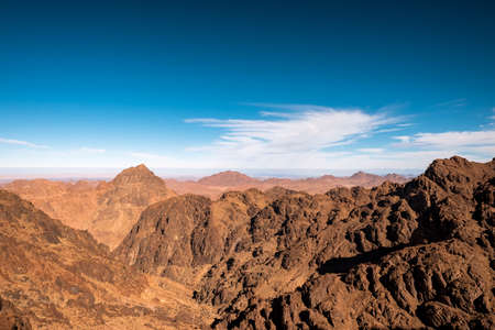 Beautiful mountain landscape, view from Mount Moses in Egypt on the Sinai Peninsula.