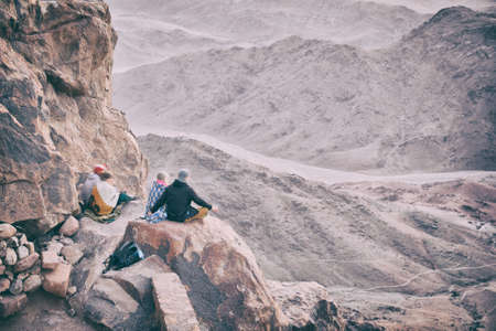 Mount Sinai, Sharm Ash Sheikh, Egypt - 25 October 2017. Pilgrims and tourists on the pathway from the Mount Sinai peak Holy Mount Moses in early morning.