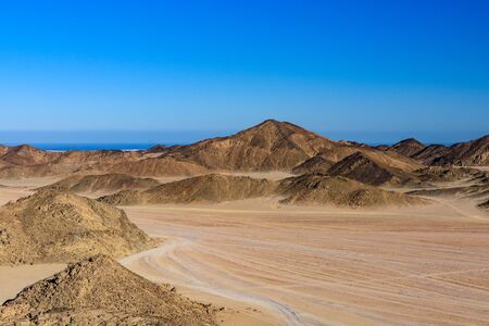 Lifeless hot desert with mountains in Egypt, Africa