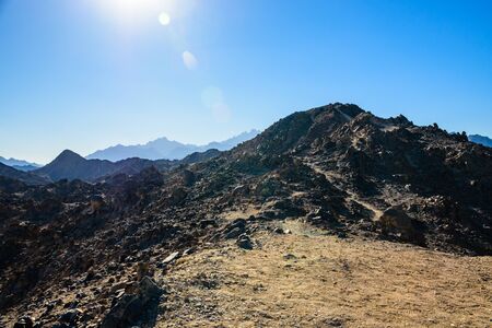 Beautiful mountains in the Arabian desert at sunset. Summer landscape. Beautiful world