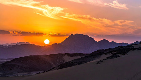 Sunset over sacred Mount Moses Sinai desert, Egypt
