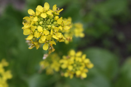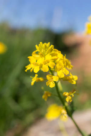 yellow colored mustard flower closeup on firm