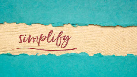 simplify reminder, pragmatic, declutter or get organized concept, - handwriting on a handmade paper