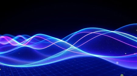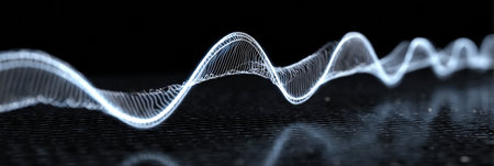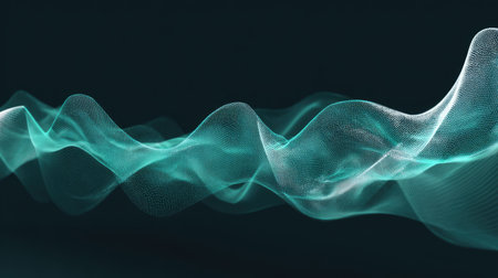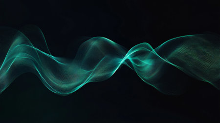 Abstract Wave lines and particles on a dark backdrop, ethereal and dynamic