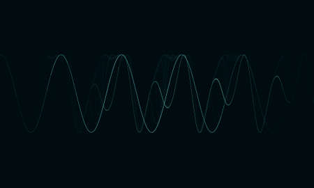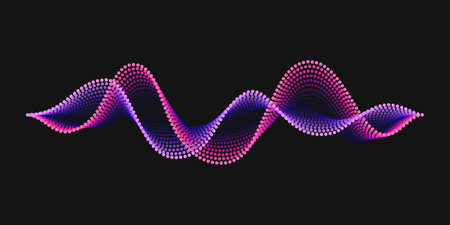 Colorful dynamic sound wave formed from lines and dots on dark background. Music record illustration.