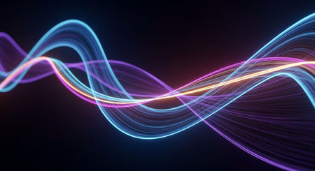 Glowing curve representing a light wave appears against a black background, showing a smooth and flowing design with a modern visual appeal.