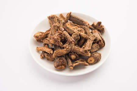 Raw dried Indian Ayurvedic Sarsaparilla is used for treating psoriasis & skin diseases, rheumatoid arthritis and kidney disease, selective focus