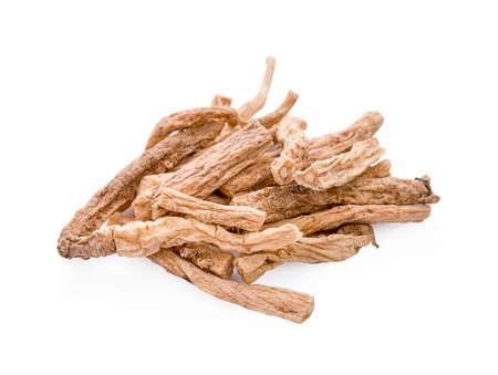 Chinese herbal medicine astragalus membranaceus on a white background, close-up pictures