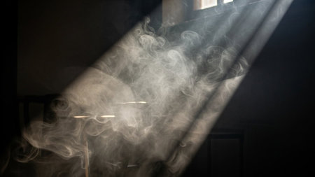 Macro shot of black smoke swirling in the air, mysterious and ethereal movement.