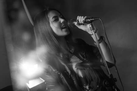 I love to sing. Passionate young woman singing and rehearsing for a rock concert
